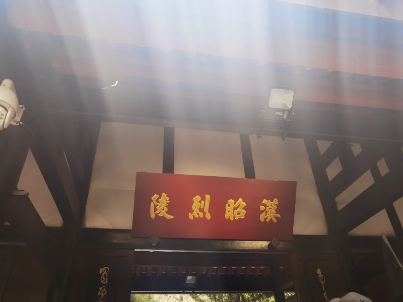 汉昭烈陵的匾额,金色和红色,拍照效果很好看。